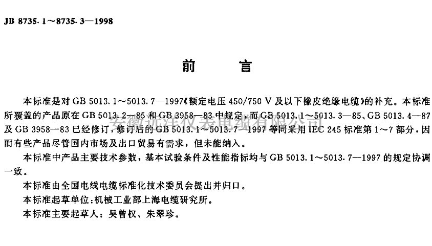 JB 8735.1-1998 額定電壓450V/750V及以下橡皮絕緣軟線和軟電纜 首先部分:一般規(guī)定