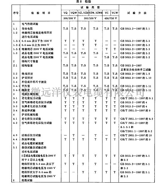 YQ/YZ/YZB/YC型電纜的護套應(yīng)是代號為SE3的橡皮混合物。YQW/YZW/YZWB/YCW型電纜的護套應(yīng)是代號為SE4的橡皮混合物。雙層護套的內(nèi)層代號為SE3的橡皮混合物,外層為代號為SE4的橡皮混合物。